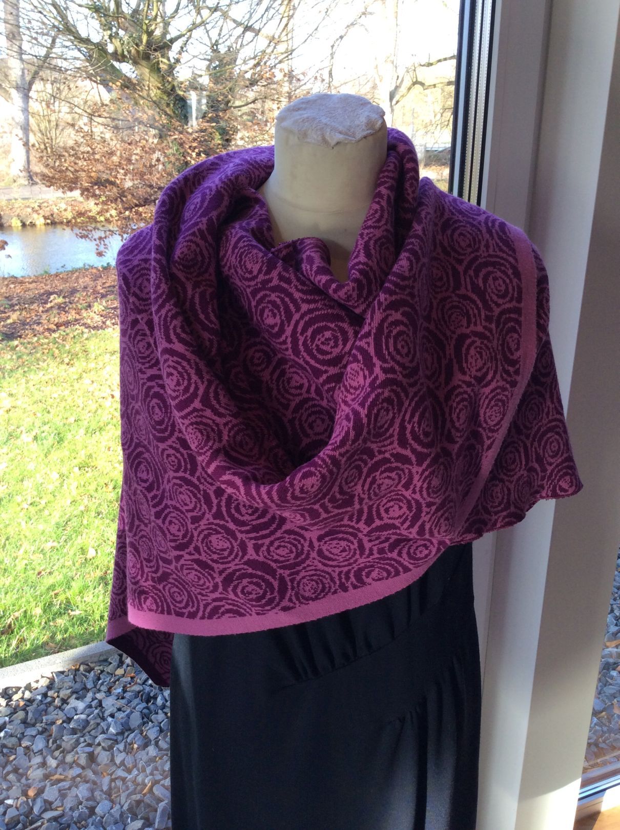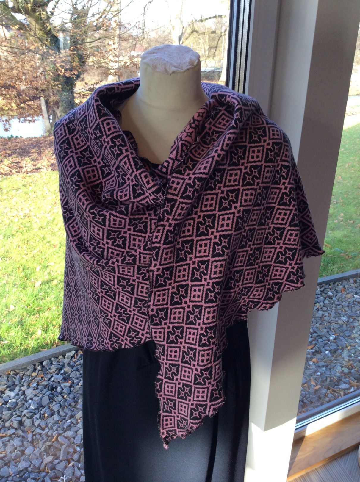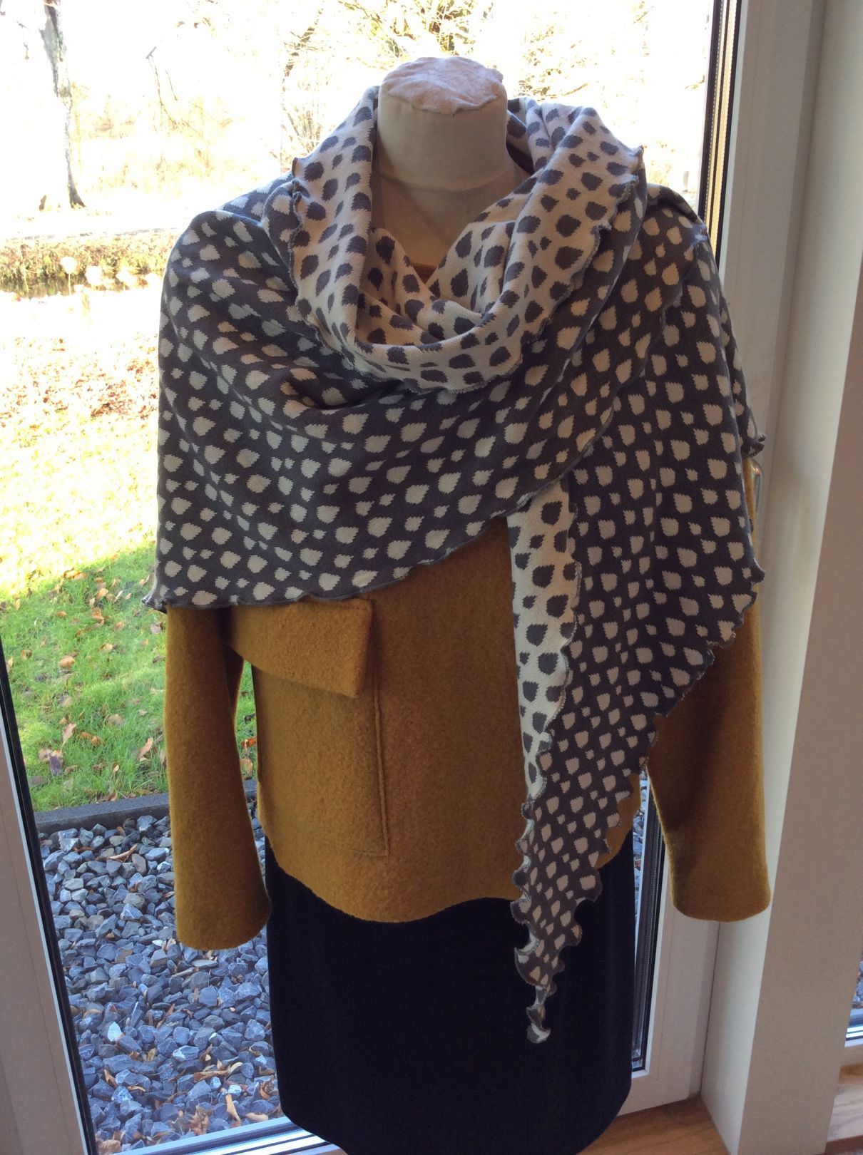 Merino-Schurwoll-Jacquard wird in NRW gestrickt und veredelt. Sie ist die Königin unter den Wollstoffen. Die Garne kommen aus Österreich. Preis: 70 – 75 €