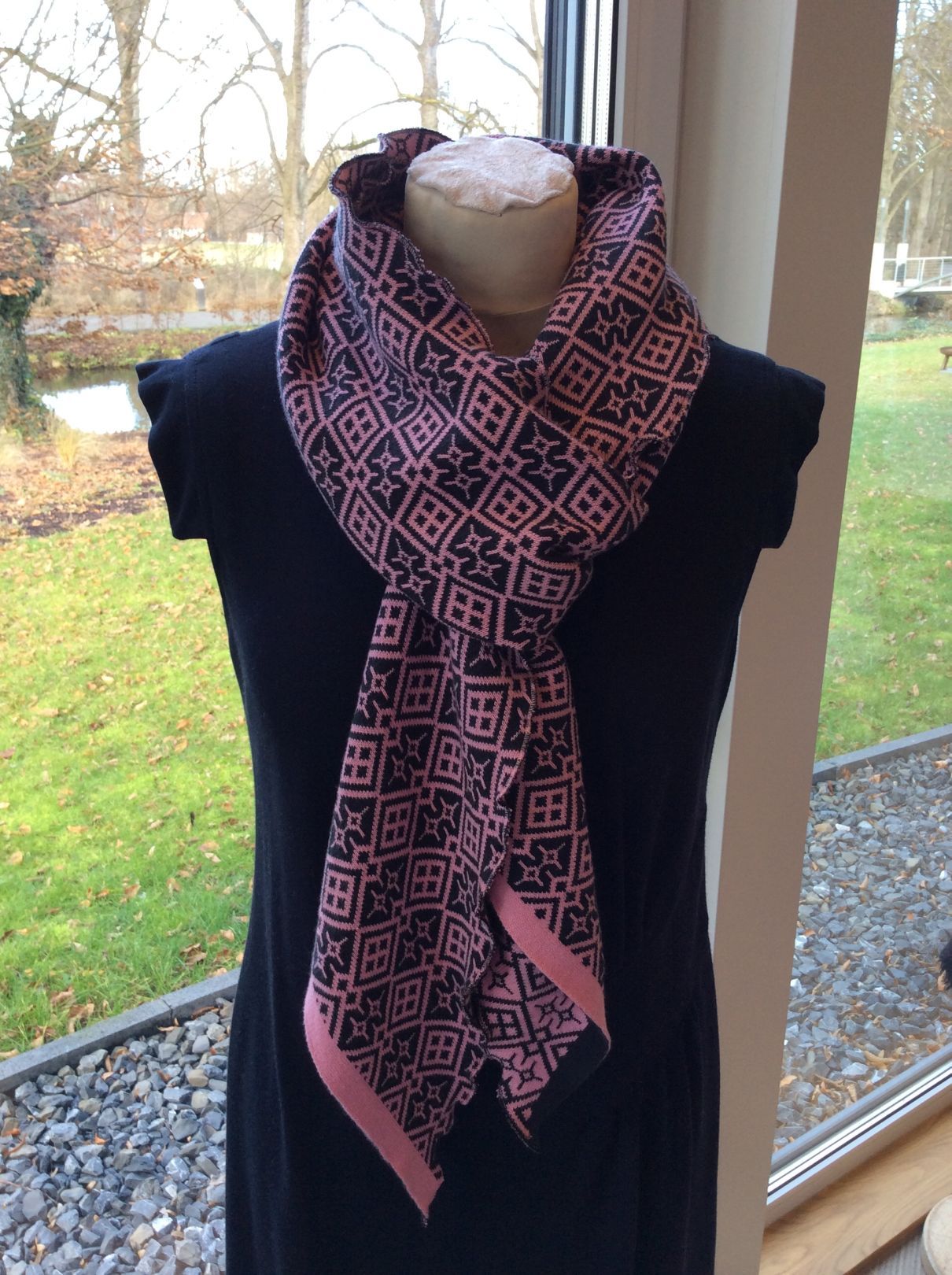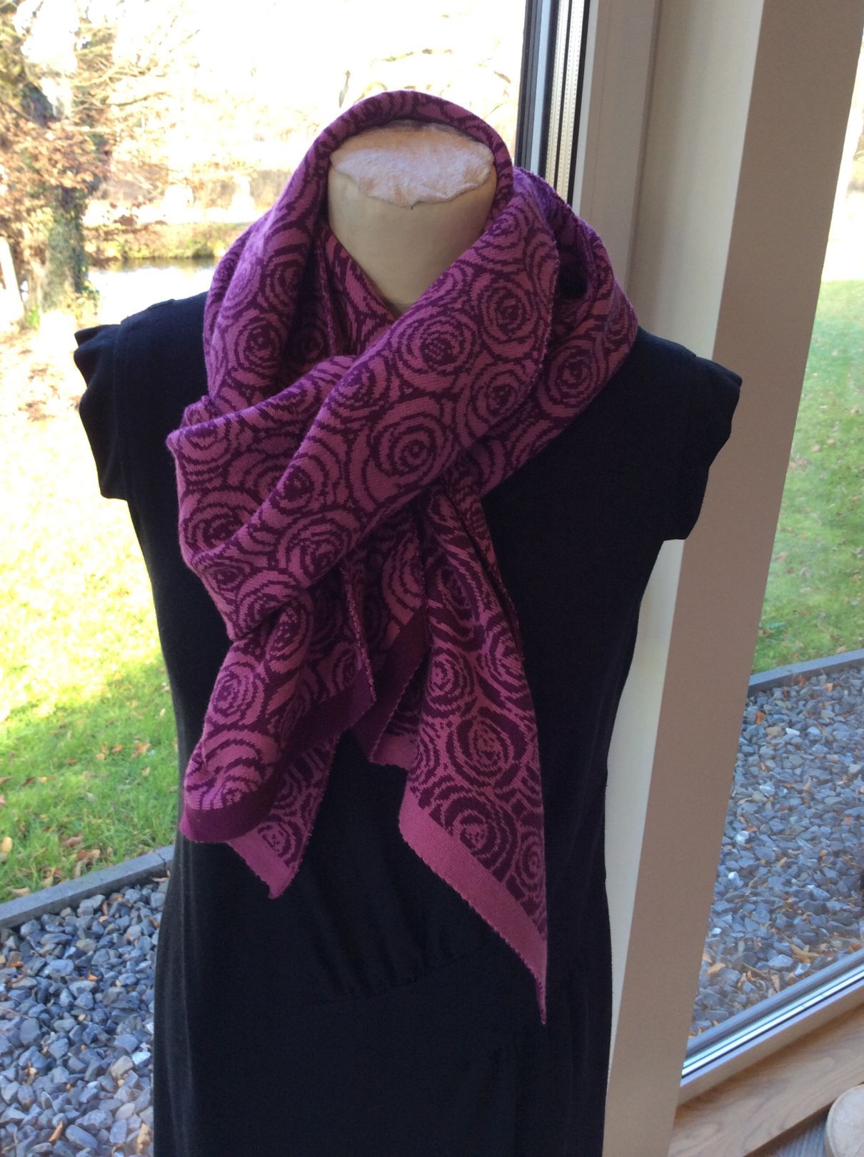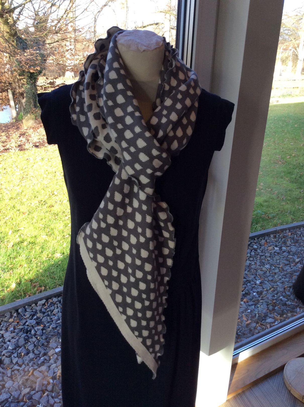 Merino-Schurwoll-Jacquard wird in NRW gestrickt und veredelt. Sie ist die Königin unter den Wollstoffen. Die Garne kommen aus Österreich. Preis: 70 – 75 €